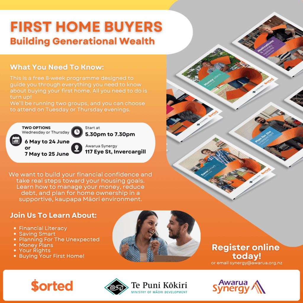 Awarua Synergy is proud to deliver Sorted Kāinga Ora in Southland, offering two evening options to suit whānau schedules.